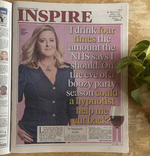 We’re delighted to announce that author and clinical hypnotherapist Tansy Forrest has been featured in the Daily Mail, both online and in print — including a prominent front-page mention and a two-page spread in their Inspire magazine. The feature highlights a journalist’s personal journey of using Tansy’s guidance to cut down on alcohol with surprising ease.