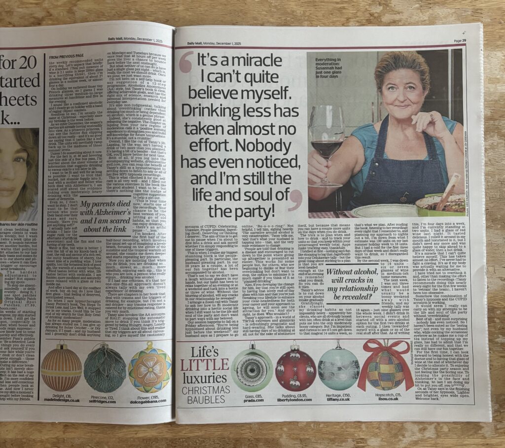 In the article, the journalist opens up about drinking around 130 units a week and describes how Tansy’s approach offered a lifeline when she wanted to change but dreaded the usual struggle. Her honest story is likely to resonate with many who have wondered whether cutting back could feel manageable — not like deprivation but like a natural, sustainable shift.