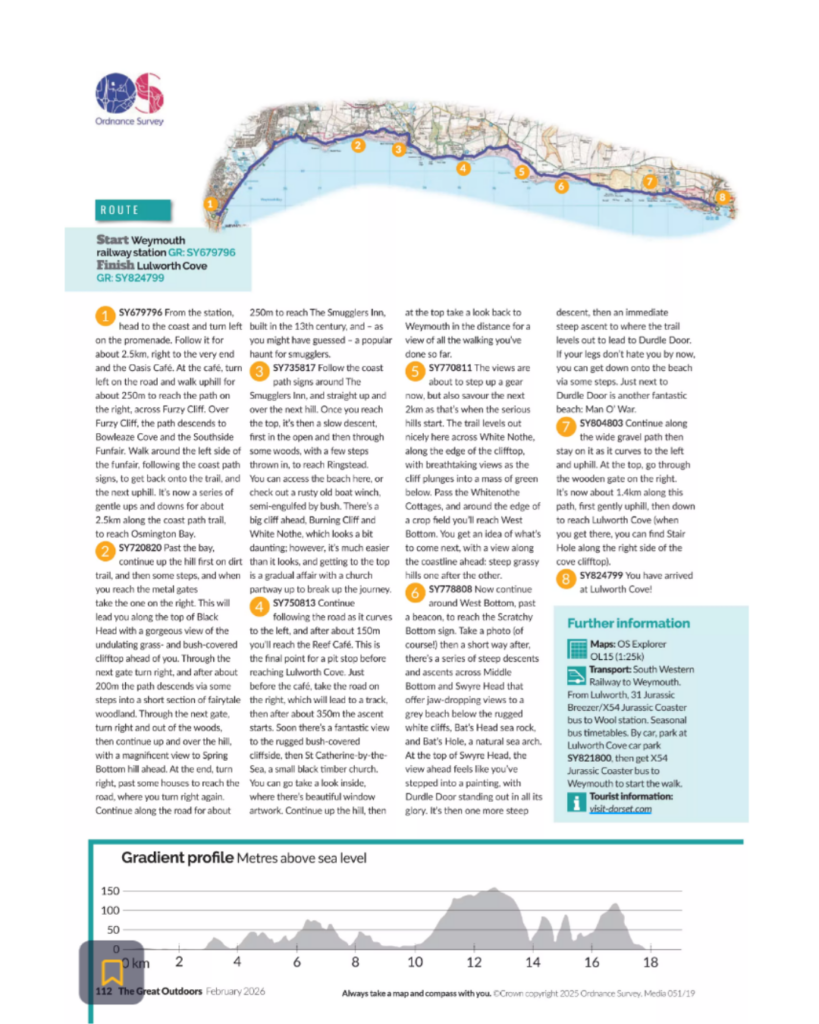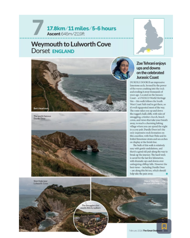 Spanning dramatic cliffs, sweeping sea views and iconic landmarks along the Jurassic Coast, Zoe’s recommendation is a standout. The magazine dedicates a full two-page spread to her walk, packed with everything readers need to plan the route themselves — including key highlights, practical tips and detailed guidance to make the most of this unforgettable stretch of coastline.